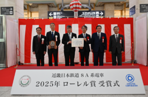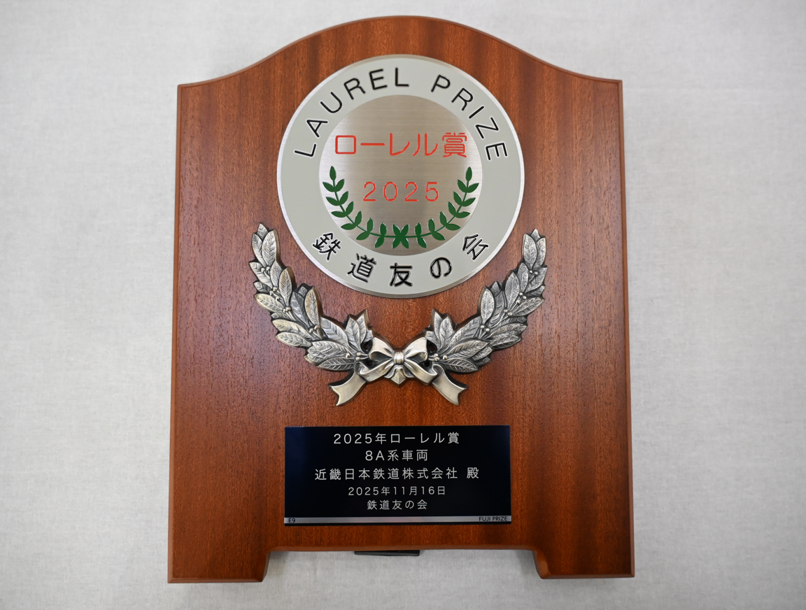 2025年11月16日(日)11:55から、大阪上本町駅にて、近畿日本鉄道 8A系車両への2025年鉄道友の会ローレル賞の贈呈式を開催しました。