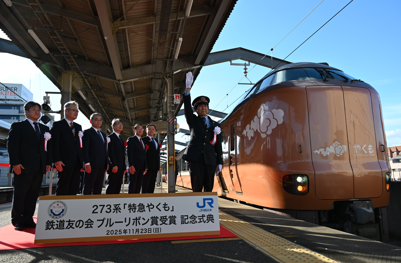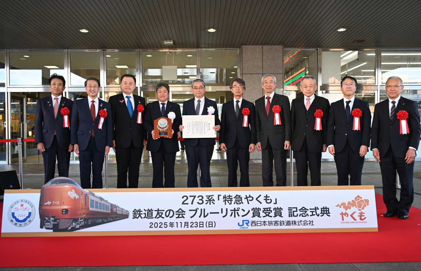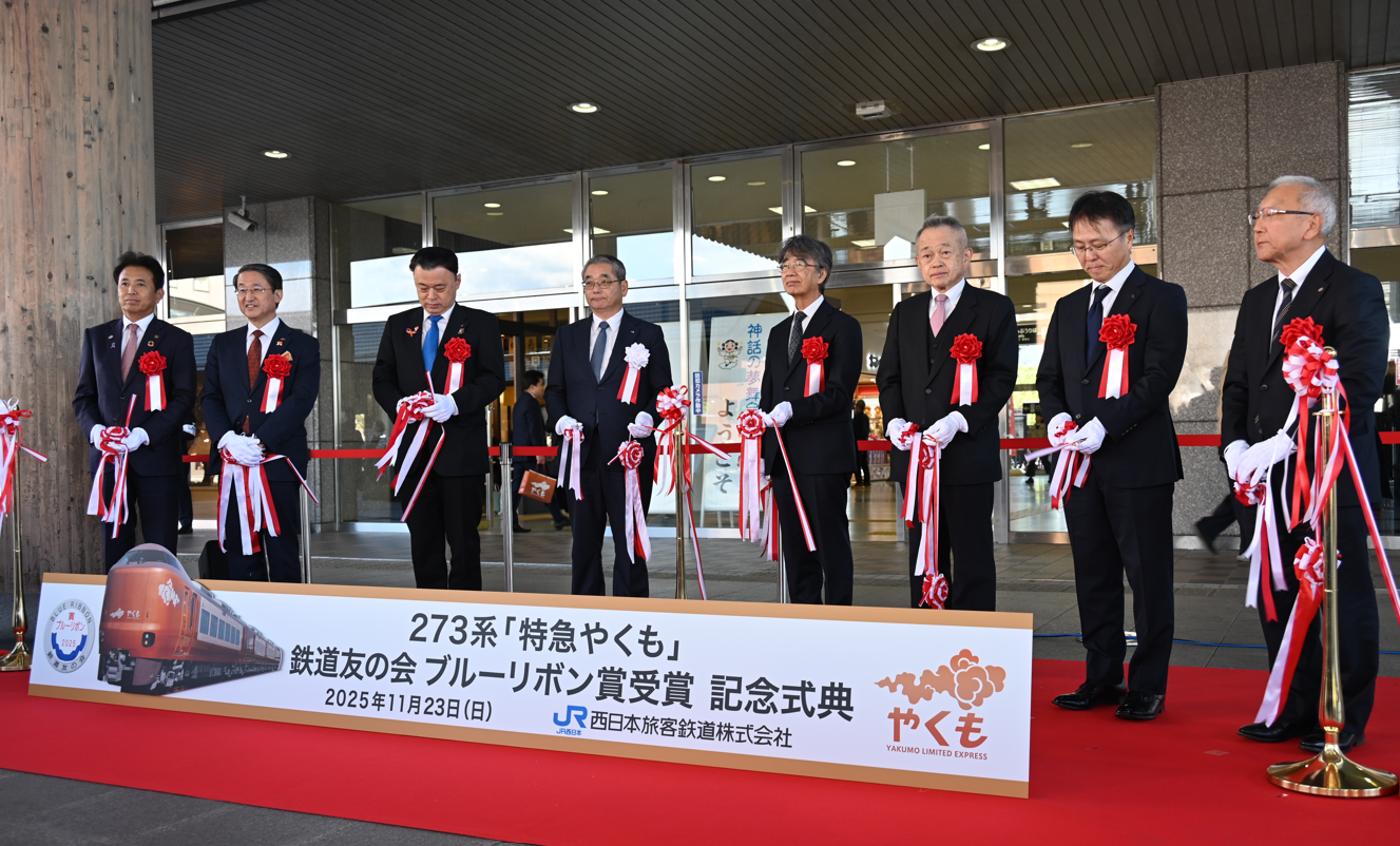 2025年11月23日(日)13:30から、JR出雲市駅にて、西日本旅客鉄道 273系車両への2025年鉄道友の会ブルーリボン賞の贈呈式を開催しました。