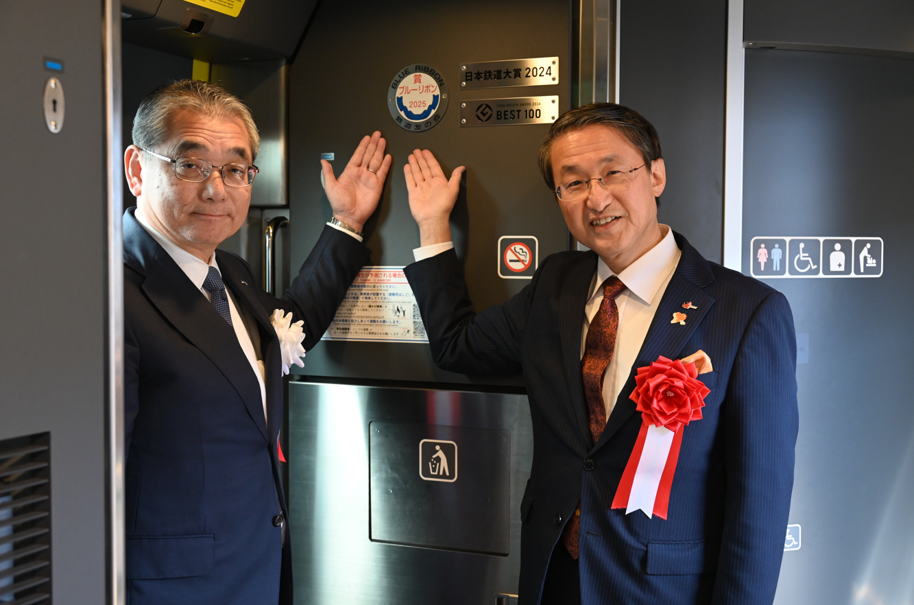 その後、場所を1番線ホームに移し、受賞関係者・来賓者の一部による出発式典を行い、一連の式典は滞りなく終了しました。