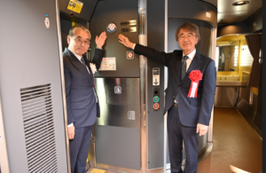 西日本旅客鉄道株式会社からは、代表取締役社長 倉坂 昇治様、理事 鉄道本部 車両部長 関谷 賢二様、鉄道本部 車両部 車両設計室長 島田 直人様、執行役員 中国統括本部長 佐伯 祥一様、理事 山陰支社長(山陰地域振興本部長) 貴谷 健史様、山陰支社 副支社長(山陰地域振興副本部長) 和田 昇司様、運輸車両部長 薮上 政樹様、運輸車両部 車両担当部長 三島 淳平様、後藤総合車両所 出雲支所長 安部 太輔様、出雲市駅長 島 充様の10名が出席、自治体からは、島根県知事 丸山 達也様、鳥取県知事 平井 伸治様、出雲市長 飯塚 俊之様の3名が出席、メーカー及び鉄道総研からは、近畿車輛株式会社 代表取締役社長 𠮷川 富雄様、取締役専務執行役員 青木 裕孝様、上席執行役員 益田 浩様の3名、川崎車両株式会社 執行役員 技術本部長 高橋 彰様、国内プロジェクト総括部 西部営業部長 森脇 渉様、国内プロジェクト総括部 西部営業部 担当課長 川久保 裕樹様の3名、公益財団法人 鉄道総合技術研究所 専務理事 芦谷 公稔様、研究開発推進部 設計・試作 上席主査GL 風戸 昭人様、車両技術研究部 車両運動 上席研究員GL 真木 康隆様の3名が出席、デザイン会社からは、株式会社イチバンセン 代表取締役 川西 康之様の1名が出席、当会からは佐伯 洋会長、松田 清宏副会長、最明 仁副会長、荻原 俊夫理事、加藤 幸弘理事、登山 昭彦理事、山口 進理事、末重 健一理事、尾藤 千秋選考委員長、関 崇博顧問、曽根 悟顧問、佐藤 百實 中国支部長、元森 徹 中国支部副支部長、川邊 晃典 中国支部監事、宇田 賢吉 東中国支部長、伊賀 正孝 東中国支部副支部長、大賀 宗一郎 東中国支部事務局長、橋本 政明 本部運営委員、末重 剛 本部運営委員(中国支部副支部長)、大前 秀之 中国支部委員の20名が出席しました。